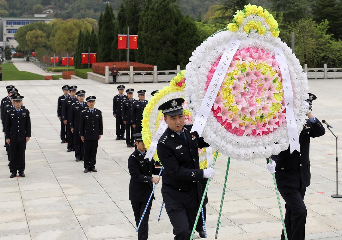 3月31日,浙江出入境边防检查总站宁波机场边检站联合宁波机场海关缉私分局在四明山革命烈士陵园开展“缅怀革命先烈 筑牢忠诚警魂”清明祭扫主题活动。