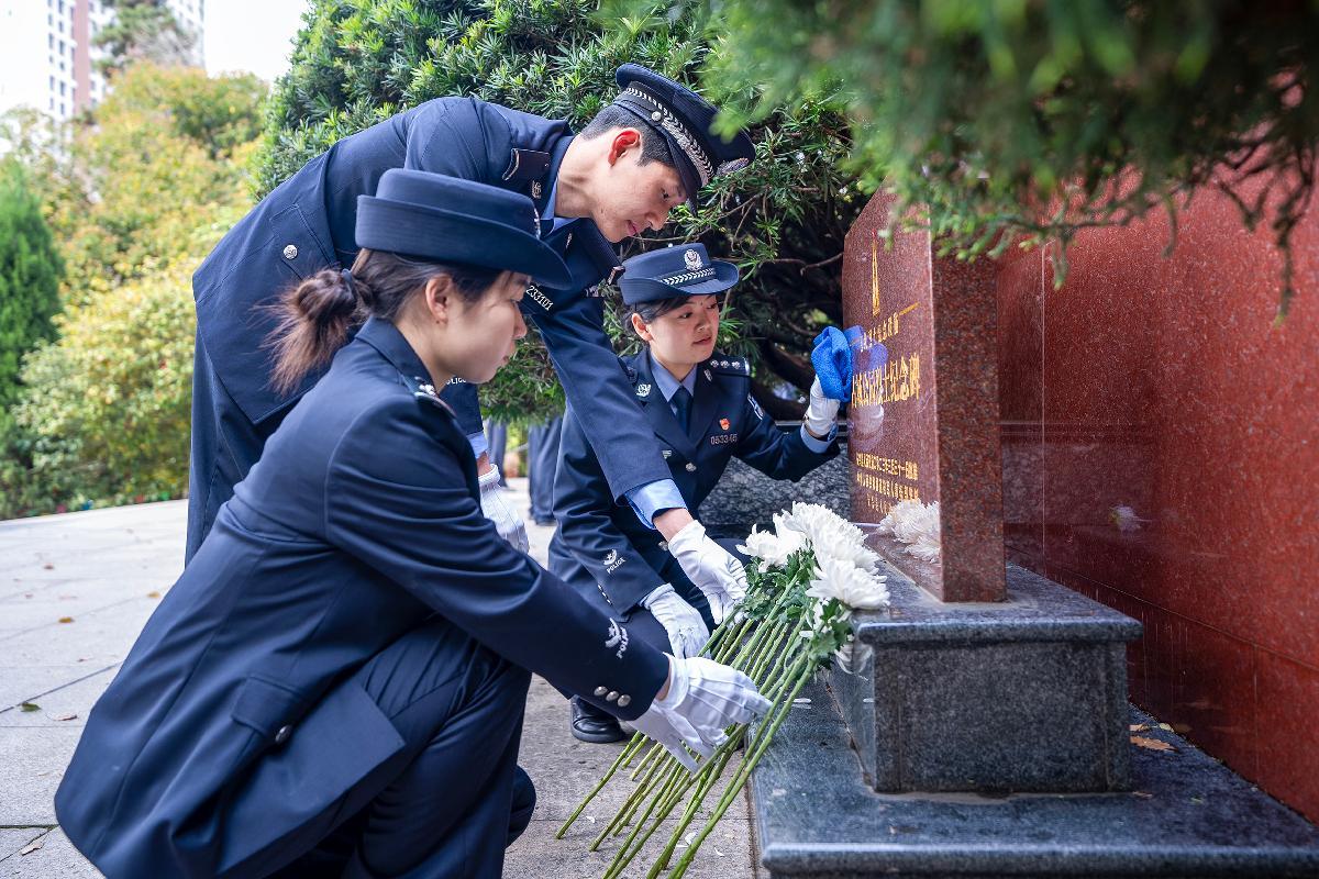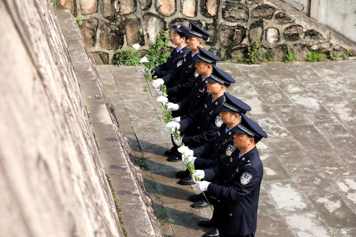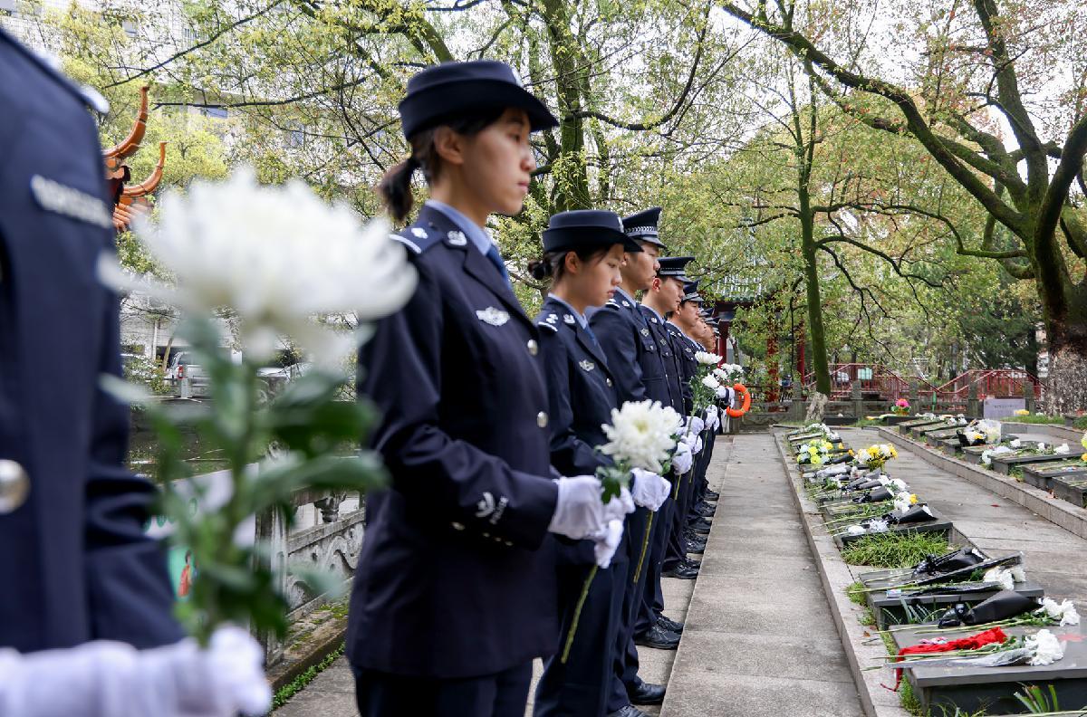 4月1日,浙江省湖州市长兴县公安局组织民警前往烈士陵园开展祭扫活动,缅怀先烈事迹,重温入警誓词,铸牢忠诚警魂。