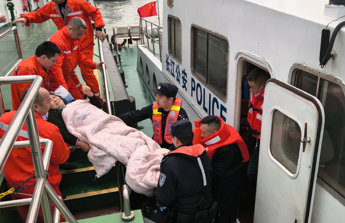 4月1日,长江航运公安局南通分局南通派出所民警联合南通渔政、南通海事部门开展水上巡逻时,接到过境船舶求助:船上一名高龄老人不慎摔倒腿部受伤严重。民警迅速联系多部门开展水上接力救援,护送老人就医治疗。