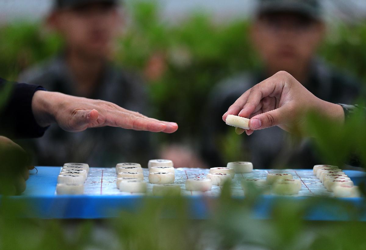 朱前方讲解棋盘上“行棋无悔”的意义。