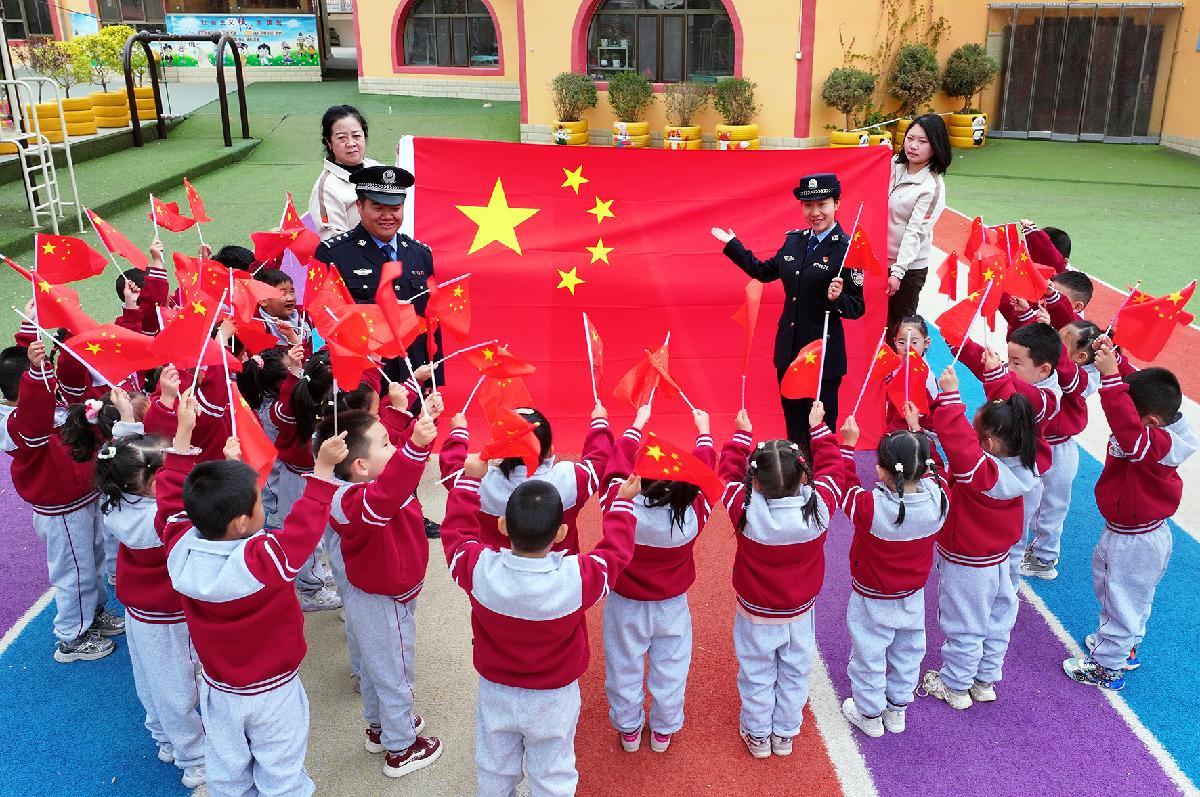 4月13日,甘肃省临泽县公安局城关派出所民警走进辖区第二幼儿园,开展“童心守护国家安全”主题宣传。