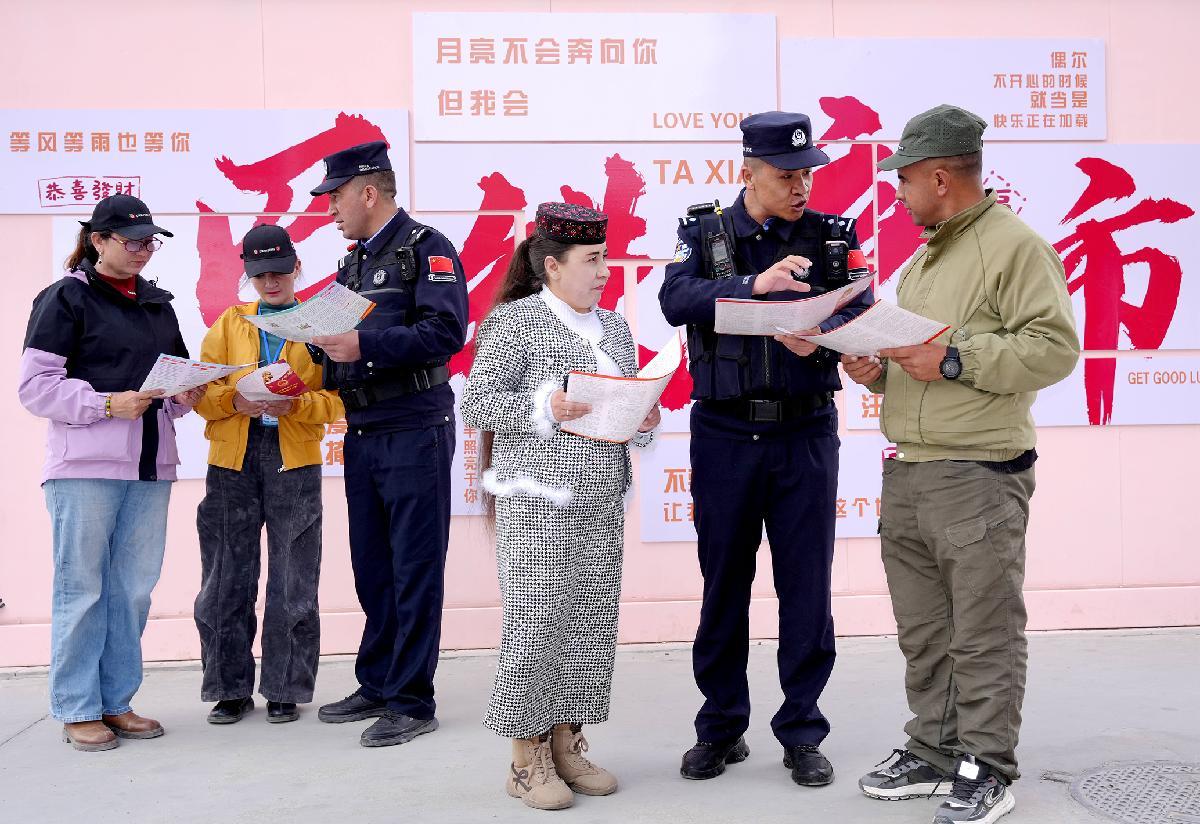 4月13日,新疆喀什边境管理支队红其拉甫口岸边境派出所组织民警走进口岸边民互市贸易区开展全民国家安全教育日主题普法宣传。