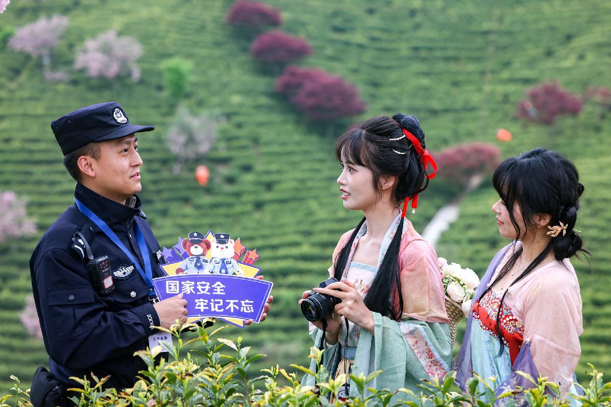 4月13日,安徽省广德市公安局柏垫派出所组织民警辅警深入辖区凤凰山生态茶园,开展全民国家安全教育日主题宣传。