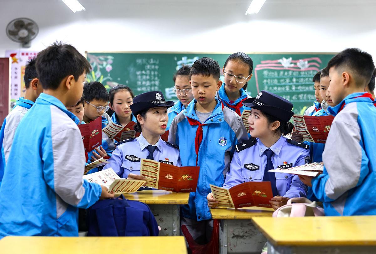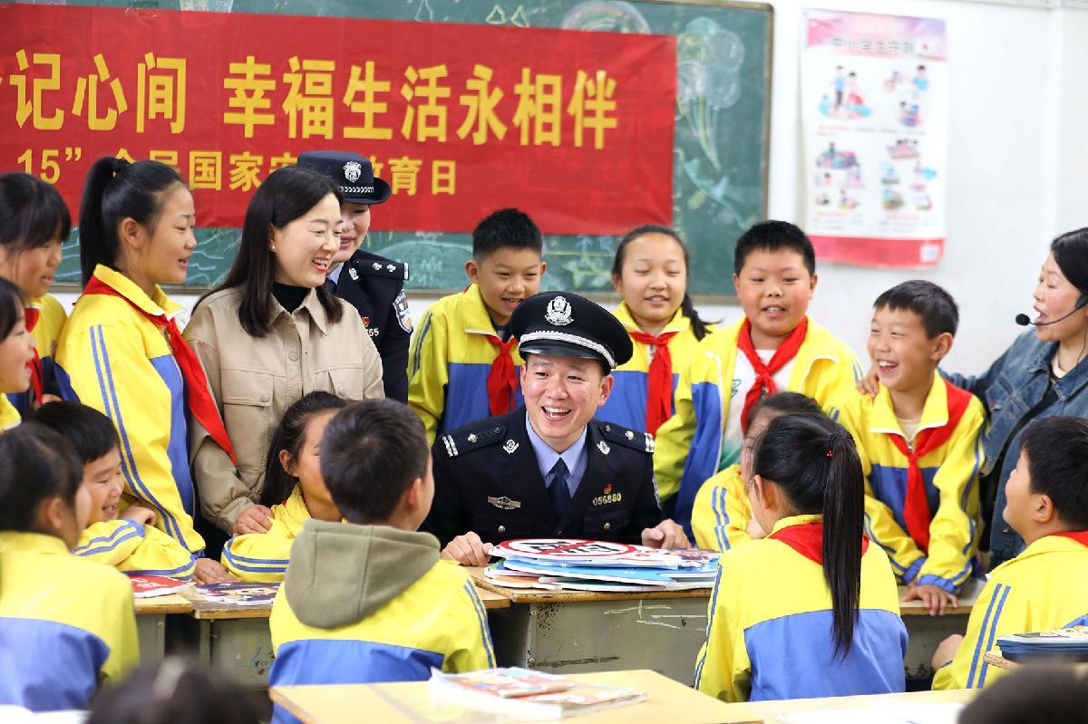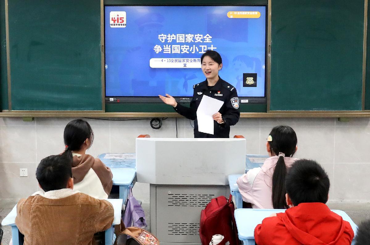 4月14日,江苏省宜兴市公安局湖㳇派出所民警走进辖区学校,开展全民国家安全教育日主题宣传。