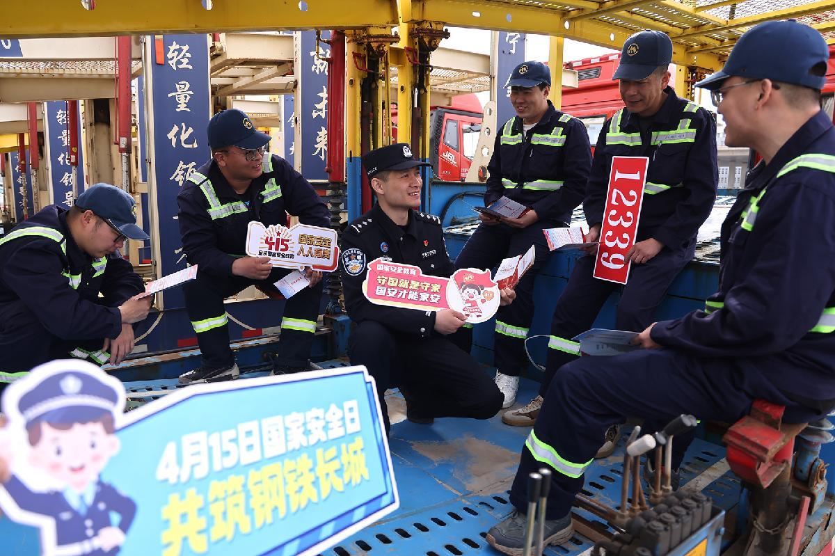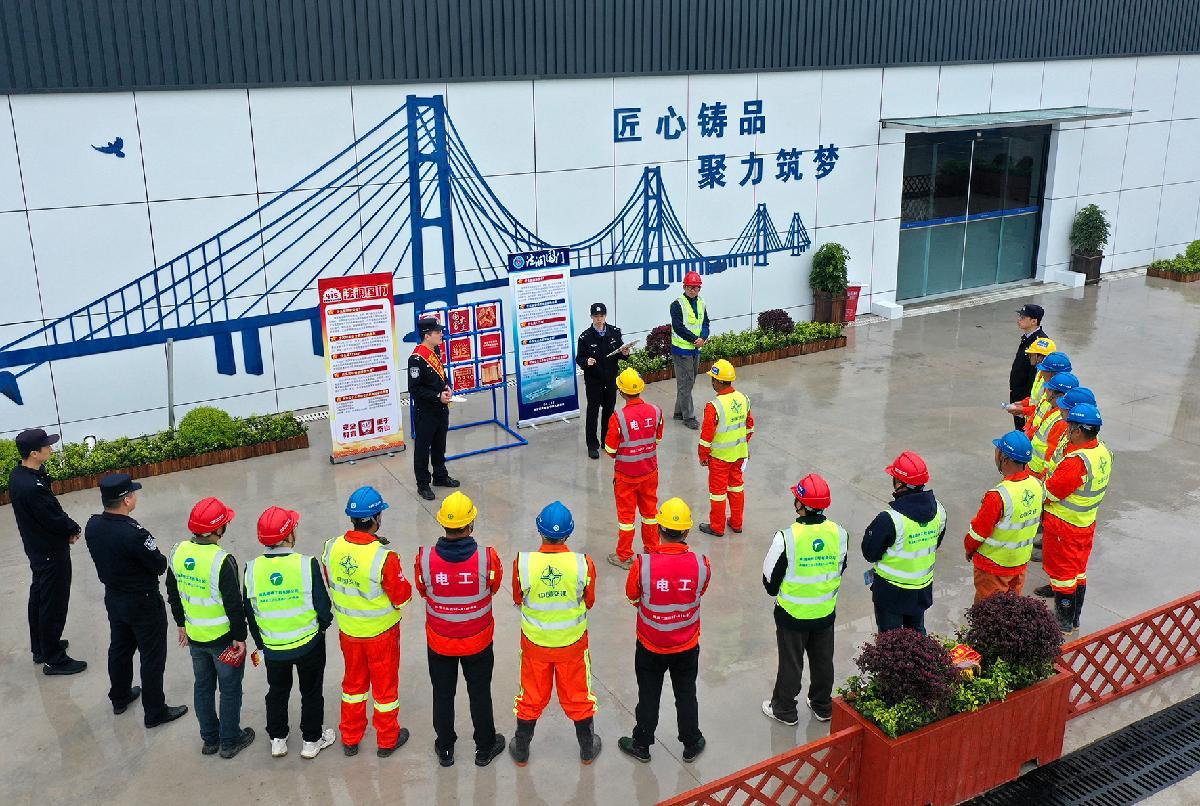 4月14日,长江航运公安局南通分局通州派出所联合南通出入境边防检查站执勤三队走进苏通第二过江通道项目现场,开展“国家安全 你我共筑”主题宣传。