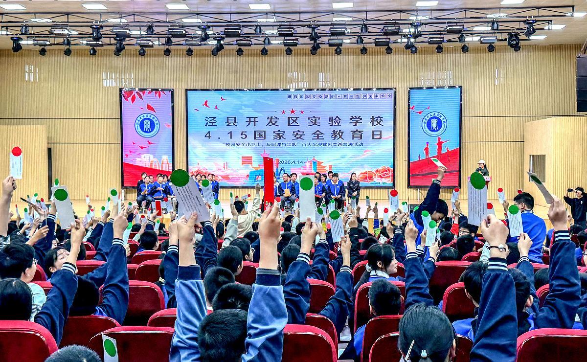 4月14日,安徽省泾县公安局泾东派出所联合县司法局在开发区实验学校开展全民国家安全教育日普法宣传。
