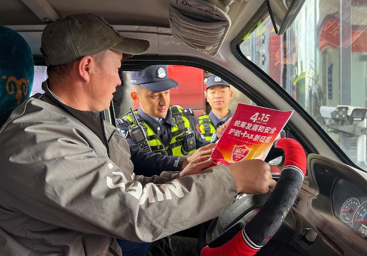 4月14日,新疆阿勒泰边境管理支队塘巴勒边境检查站立足执勤一线,扎实开展全民国家安全教育日主题宣传。