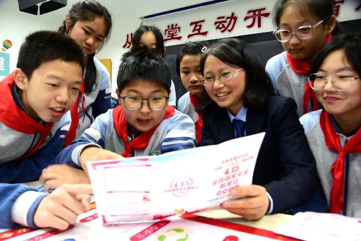 4月13日,在江苏省镇江市南徐小学,润州区七里甸司法所工作人员向小学生宣讲国家安全及相关的法律知识。