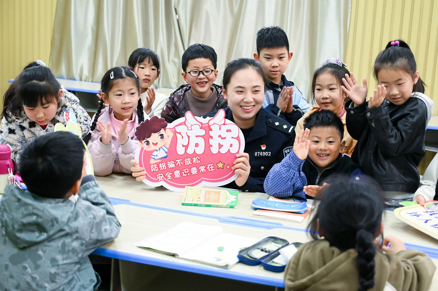 4月2日,安徽省马鞍山市和县公安局民警在青少年活动中心,利用“春假”契机,为孩子们开展防拐骗、防溺水等主题宣传。