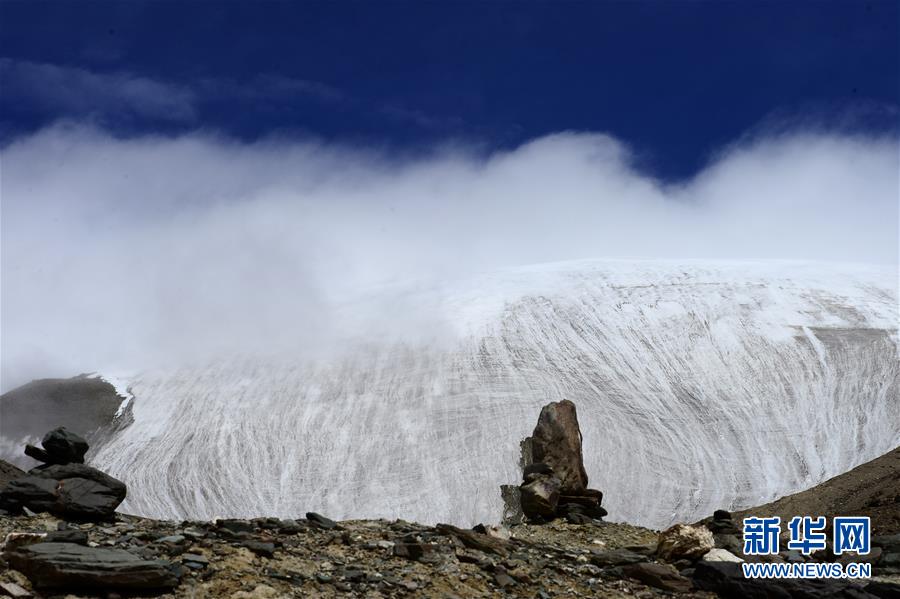 这是在青海省海西蒙古族藏族自治州格尔木市境内拍摄的昆仑山玉珠峰冰川一角(2017年8月19日摄)。新华社记者 张宏祥 摄