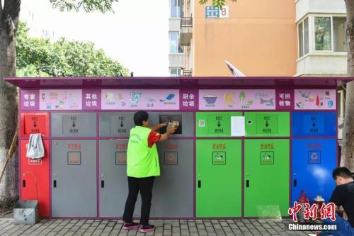 北京一居民小区使用新型分类垃圾桶。中新社记者 侯宇 摄