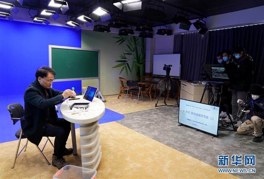 2月19日,在上海市黄浦区教育学院录制点,严明老师在录制高一年级的物理课。