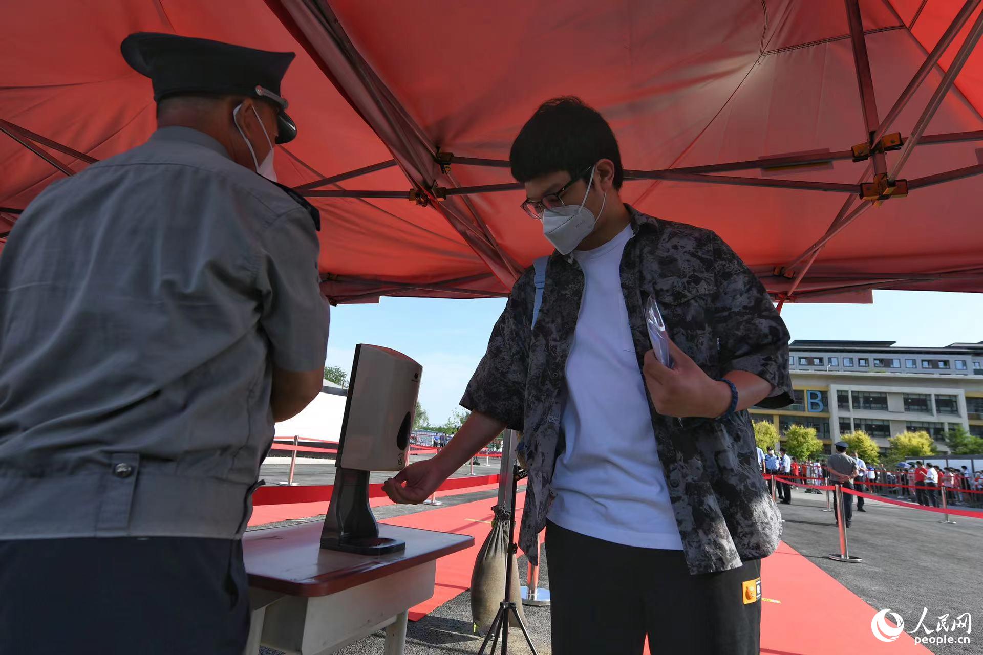 6月7日,北京市人大附中通州校区考点,考生进入考场前,对手部进行消杀。人民网记者 翁奇羽摄
