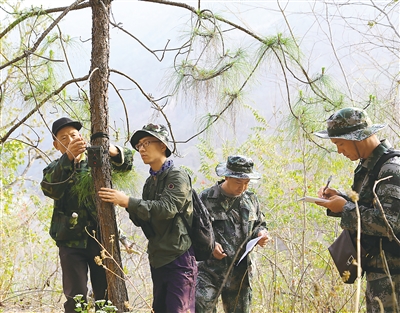 进入4月,林间缺水,出发当天李朝富背着50斤重的水桶上山。刚走了半个多小时山路,记者已有些跟不上趟。李朝富走在前面,步伐平稳。