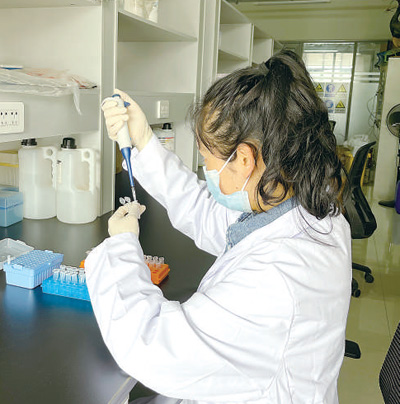 中国科学院昆明动物研究所科研人员在开展绿孔雀的遗传背景检测。