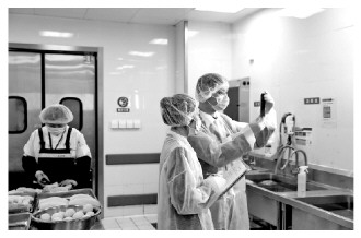 “航空食品具有供应链长、环节多等特点,保质期又通常比较短。航食企业从采购、贮存到加工、综合装配、过渡冷藏,最终运送装机,任何一个环节出现纰漏都可能影响食品的安全性。”南京禄口机场海关卫生监督科科长王斌介绍,为了让广大旅客吃得安心、吃得安全,除了现场进行检查外,海关关员还会针对蔬菜农药残留、食品中心温度及食用油酸价等项目开展快速检测,并对生产的食品随机抽样送实验室检测,以强化对食品生产经营单位的监管。