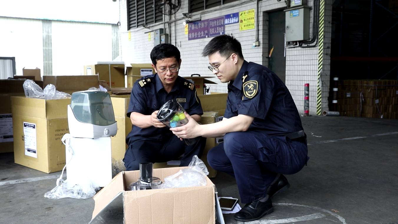 图为:近日,广州海关所属海珠海关关员对广交会进境展品进行监管。