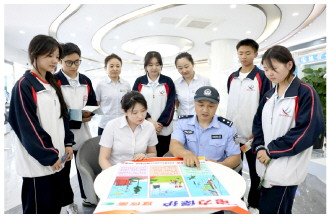 为普及电力设施保护及用电安全知识,国网新疆电力有限公司昌吉供电公司近日联合新疆维吾尔自治区昌吉市公安局北方南路派出所,在昌吉雪莲营业厅为昌吉第四中学学生开展普法宣传活动,图为活动现场。 本报通讯员 张桂花 摄