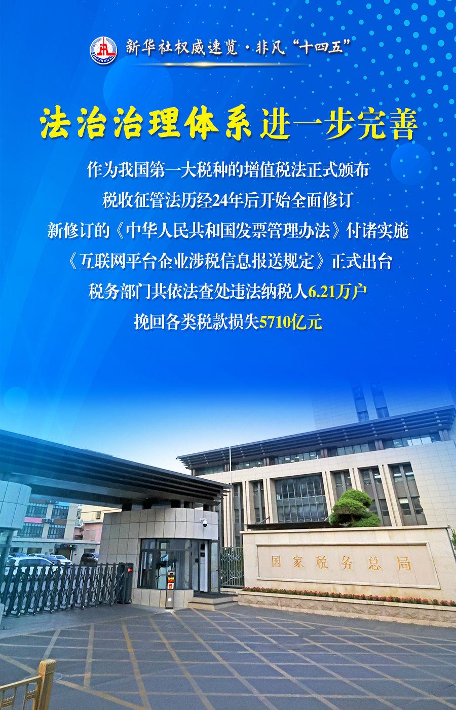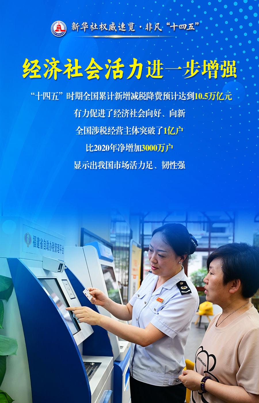 财力基础进一步壮大、经济社会活力进一步增强、市场营商环境进一步优化……28日举行的“高质量完成‘十四五’规划”新闻发布会上,国家税务总局局长胡静林说,“十四五”时期,我国税收改革发展取得积极成果。通过这组海报,一起来看看。
