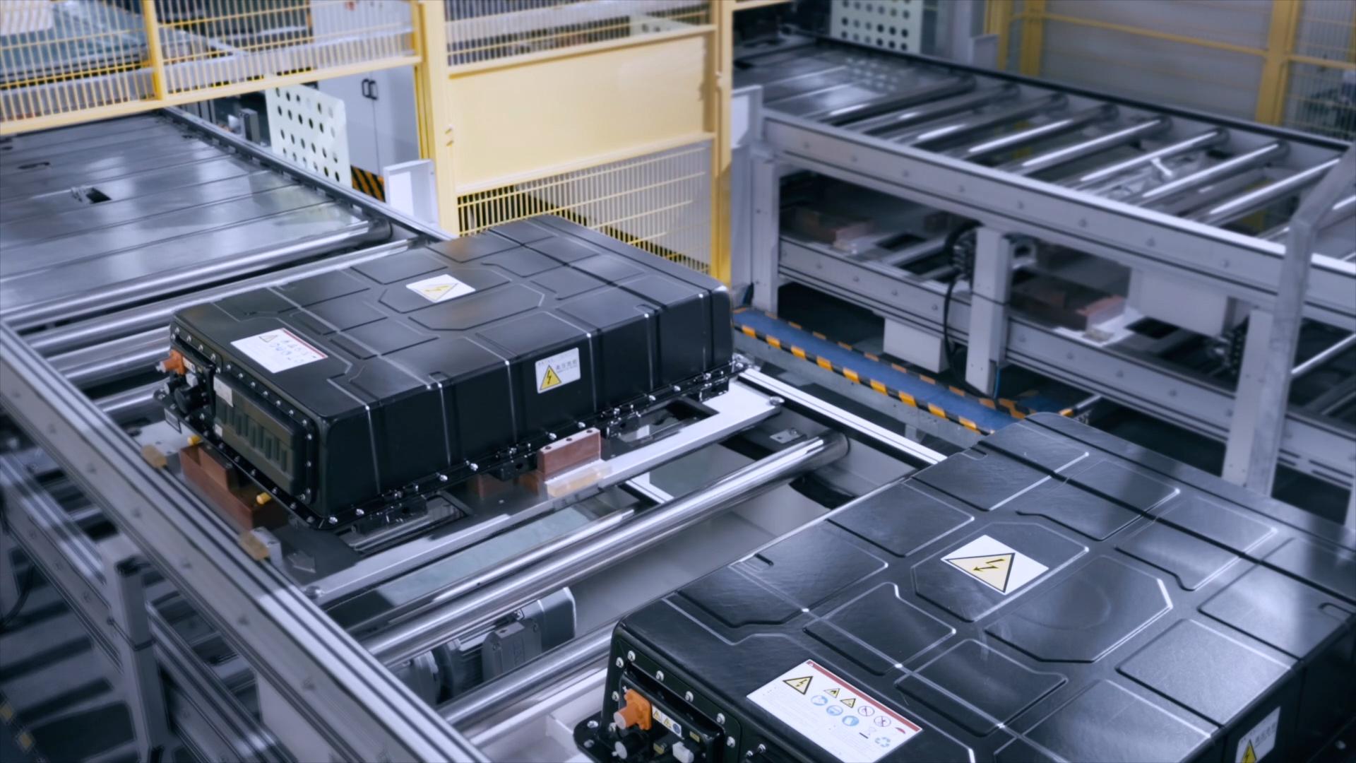 在宁德时代工厂,新能源汽车动力电池源源不断下线出厂。