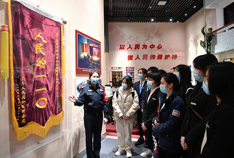图为讲解员(左一)在“漳州110”事迹展览馆内向参观者介绍展品。新华社记者 魏培全 摄