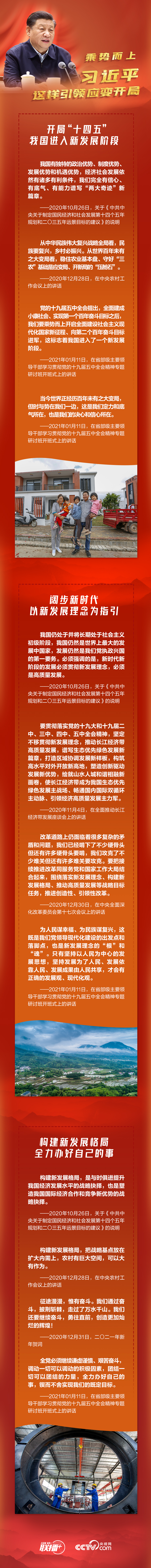 岁末年初,习近平总书记在多个重要会议上深刻分析了新发展阶段面临的时与势,阐述了深入贯彻新发展理念的新要求,为加快构建新发展格局奠定了坚实的思想基础。
