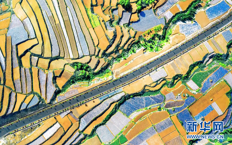 航拍“爱尚沂南 红色之旅”环线,风景如画。 新华网发