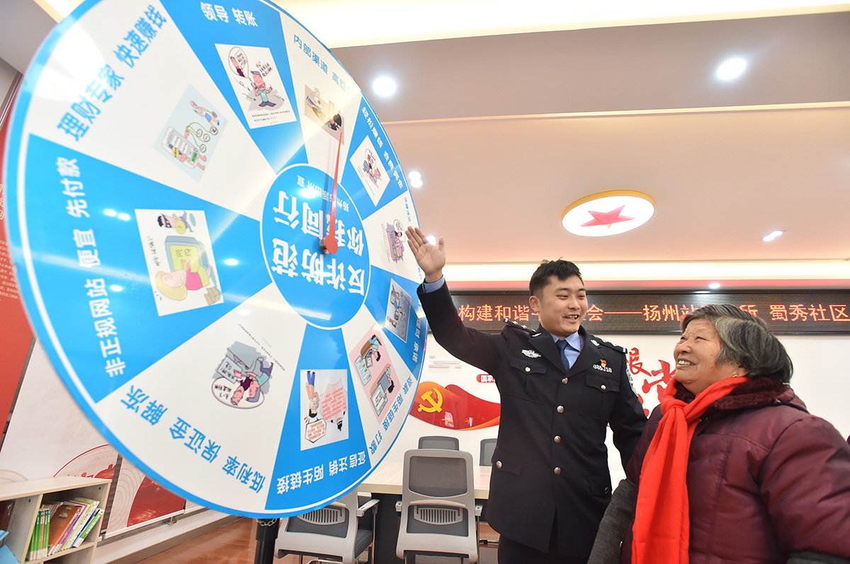 1月3日,南京铁路公安处扬州站派出所组织开展“送平安、迎新年”为主题安全防范宣传活动。民警通过转盘演示、案例宣讲等方式,向社区居民们宣传电信网络诈骗的种类、常见诈骗手段和防范技巧,增强大家防范电信网络诈骗安全意识。