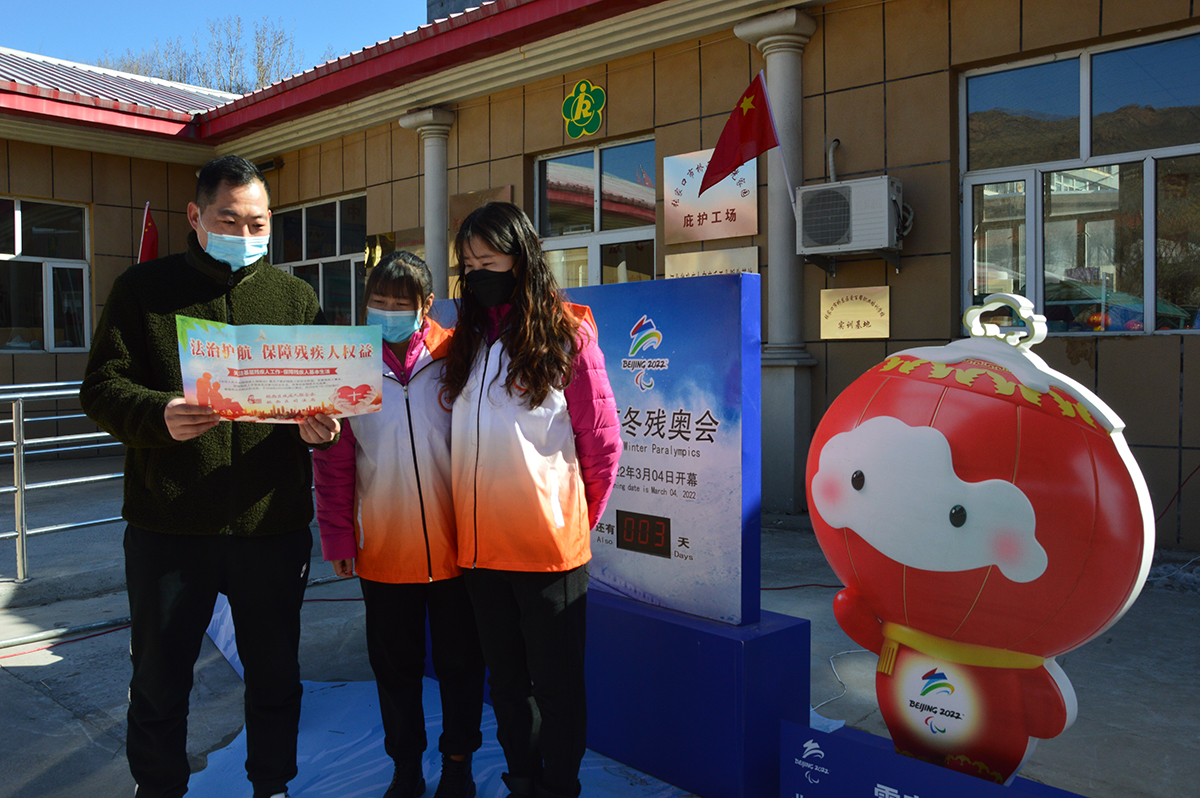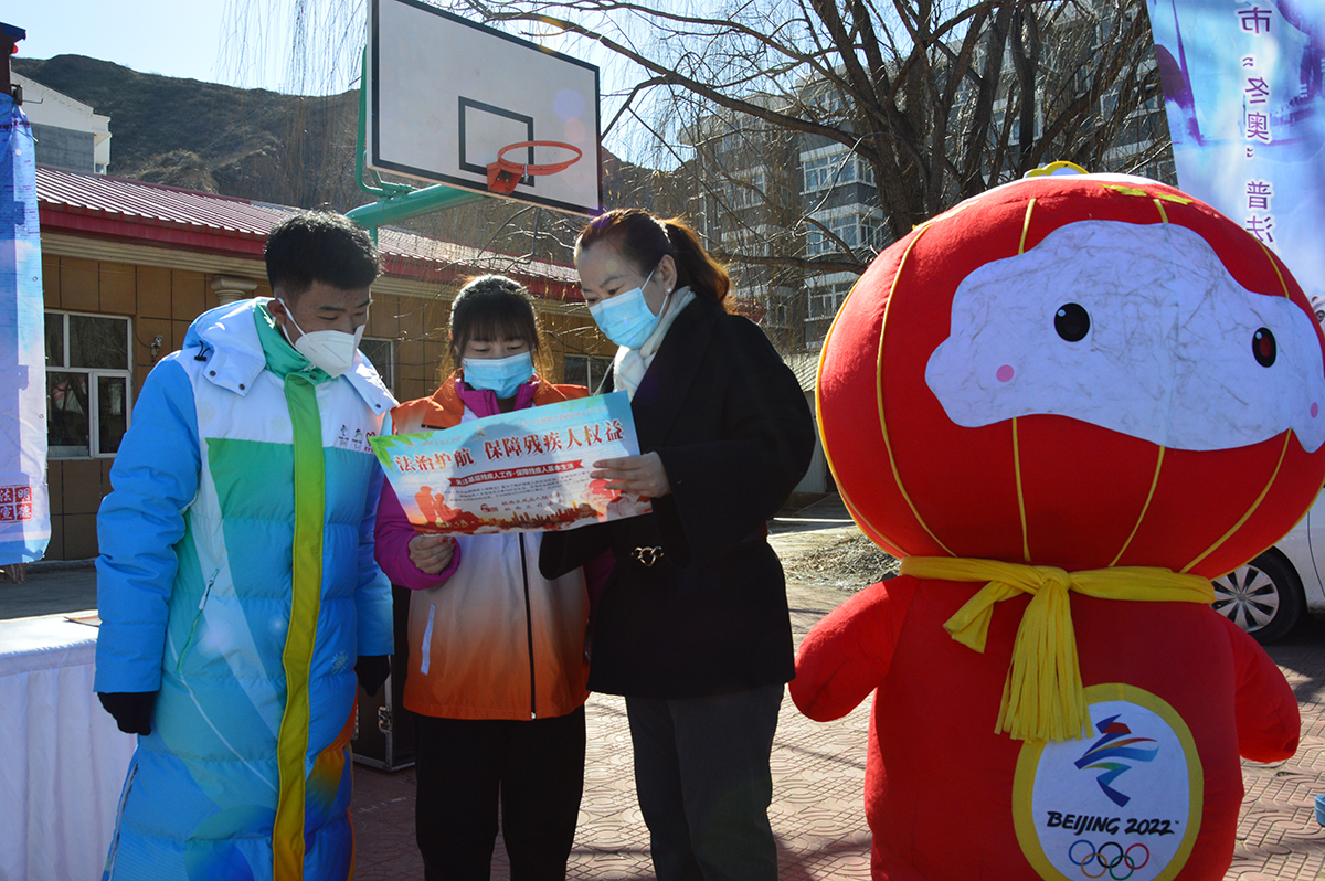 为迎接2022年北京冬残奥会召开,河北省张家口市法宣办、市残联和团市委近日主办“法治护航残疾人权益——普法大篷车喜迎冬残奥”专场普法活动,载有各种冰雪运动器材的大篷车开进河北省首家残疾人庇护工场——张家口市阳光家园庇护工场,冬奥城市志愿者和工作人员帮助残疾人朋友和现场群众体验冰雪运动并开展普法宣传。