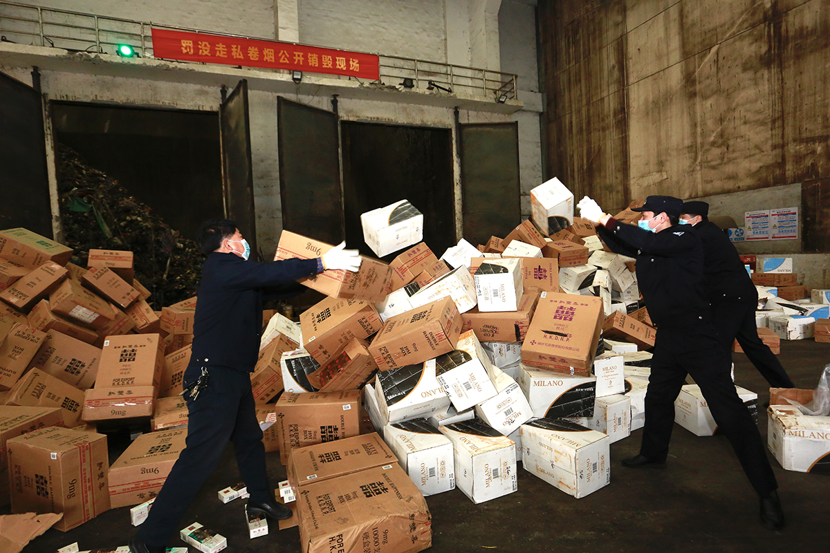 3月10日,浙江省岱山县公安局联合舟山海关、岱山县烟草专卖局等多部门举行“罚没走私卷烟公开销毁活动”,采取焚烧发电的方式,集中销毁假烟22.735万条,可直接发电约18000余度。