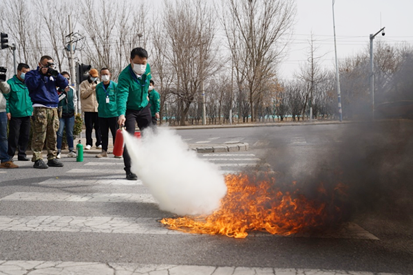 随后,工作人员演示了假冒伪劣消防产品和合格消防产品灭汽油火灾的实验。只见假冒伪劣消防产品并未将火扑灭,反而造成火势的扩大。