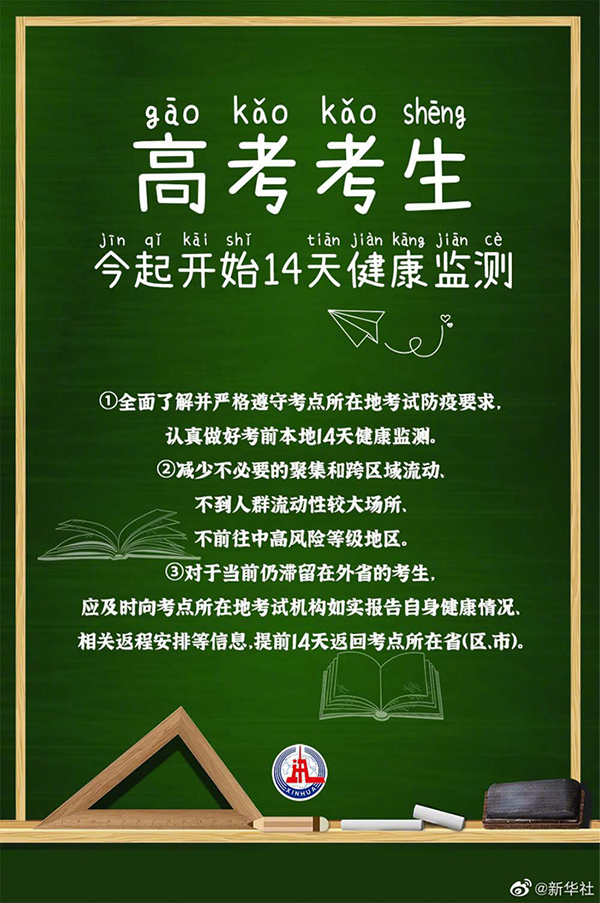 根据教育部要求:①考生应做好考前连续14天本地健康监测;②减少不必要的聚集和跨区域流动、不到人群流动性较大场所、不前往中高风险等级地区等;③对于当前仍滞留在外省的考生,应及时向考点所在地考试机构如实报告自身健康情况、相关返程安排等信息。