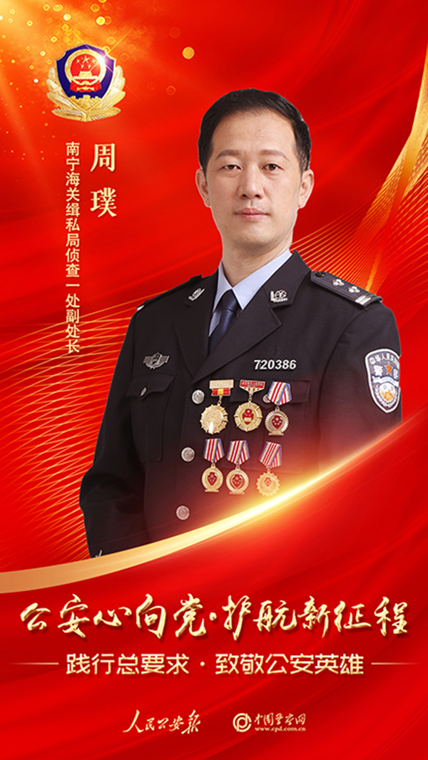 周璞凭着过硬的本领、过人的胆识,屡破大案,屡建奇功,先后荣立个人二等功3次、三等功2次,获评“公安部直属机关优秀共产党员”“广西壮族自治区先进工作者”“广西壮族自治区模范人民警察”“广西青年榜样”等。他在平凡的岗位上,留下了一串串闪光的足印,坚守初心,忠诚守卫南疆国门。 (杨前刚 肖鹏飞)