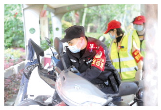 图① 谢经禄带领“平安社区”警民联防志愿队在小区巡逻。