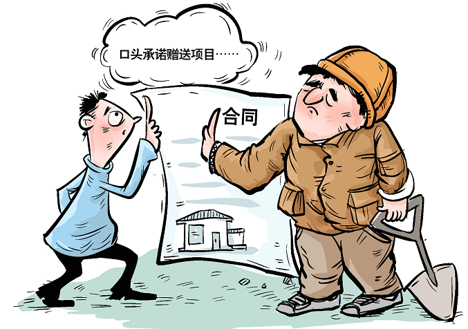 顺义法院牛栏山法庭庭长胡泊称,司法实践中,在磋商阶段,施工方为了能尽快促成建房合同的订立,往往会口头许诺赠送房主某些施工项目。但对于口头承诺赠送的施工项目,当事人往往会遗漏在合同中进行约定,部分项目与某些合同通常载明的施工项目具有连贯性,也极易被房主忽略,如化粪池、下水井与下水工程具有连贯性,许多涉案合同中未就化粪池、下水井进行约定。此外,普遍存在对于部分赠送施工项目的赠送内容不明确的情况,例如垒院墙、平整院子等,施工方称赠送该类项目的本意通常是免去人工费用,但房主却认为是包工包料,导致双方对费用产生分歧。