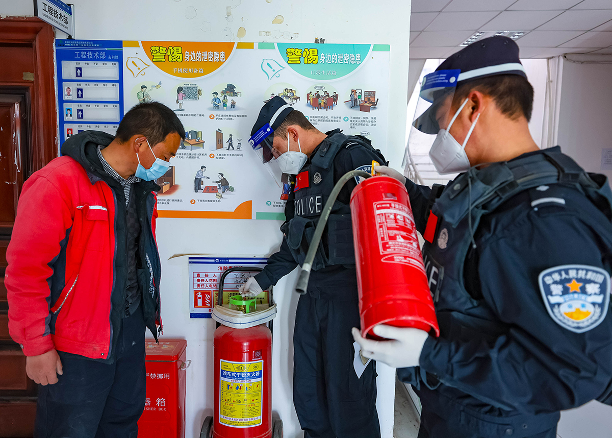 10月9日,新疆喀什边境管理支队红其拉甫边境派出所移民管理警察对辖区部分企业工地开展安全检查,并向工人们普及法律知识。检查中,移民管理警察深入工地对用水、用电、防火、施工安全进行了详细排查,对存在的问题隐患立即督促负责人进行整改,并开展相关法律知识宣传,避免出现劳资纠纷等问题,确保边境地区企事业单位安全生产。