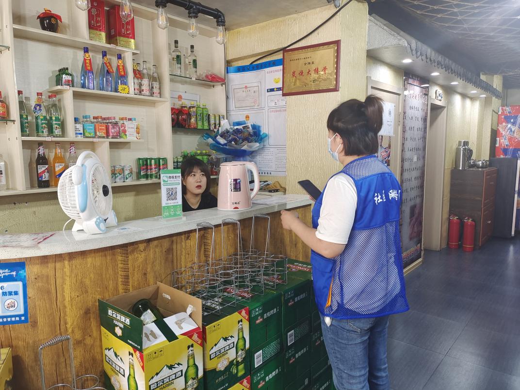 网格员提示辖区营业场所落实疫情防控政策