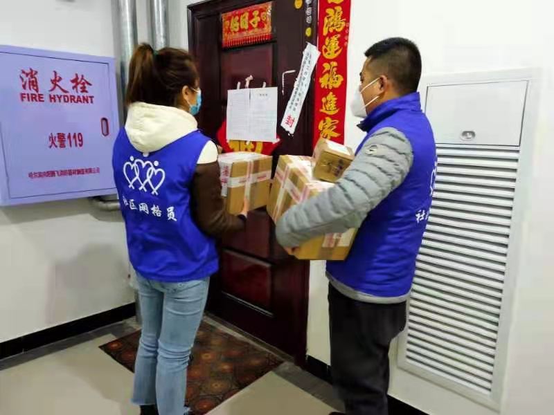 网格员为居家隔离人员送快递