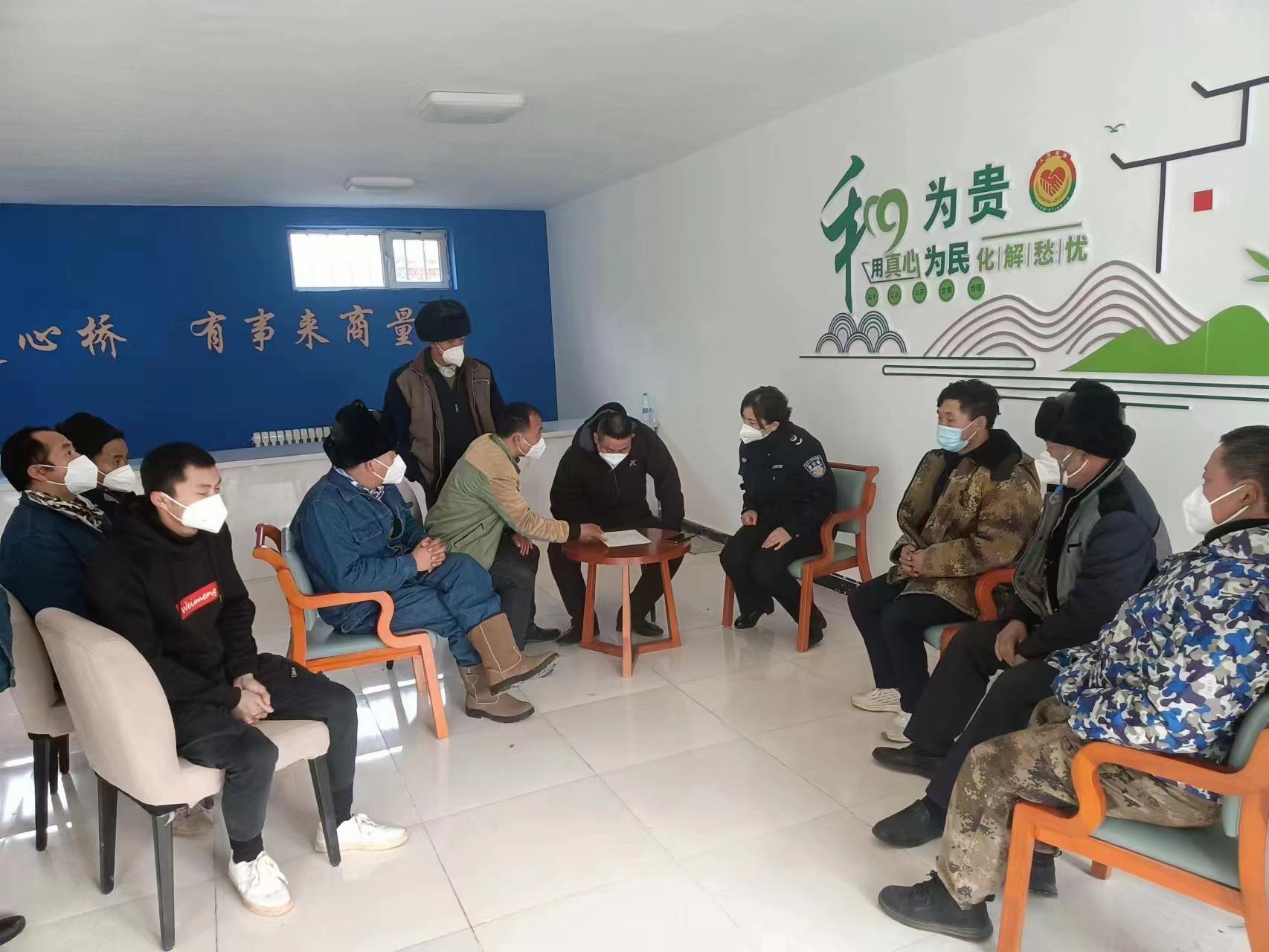 5月2日,也某和多某因草场纠纷再次发生争吵,村(社区)网格长得知情况后,多次调解未果,于6月20日联合铁厂沟镇“石榴籽”马背流动调解队,深入牧区上门服务,为双方进行“面对面”调解,并提出调解方案。最终,双方达成和解协议,握手言和。