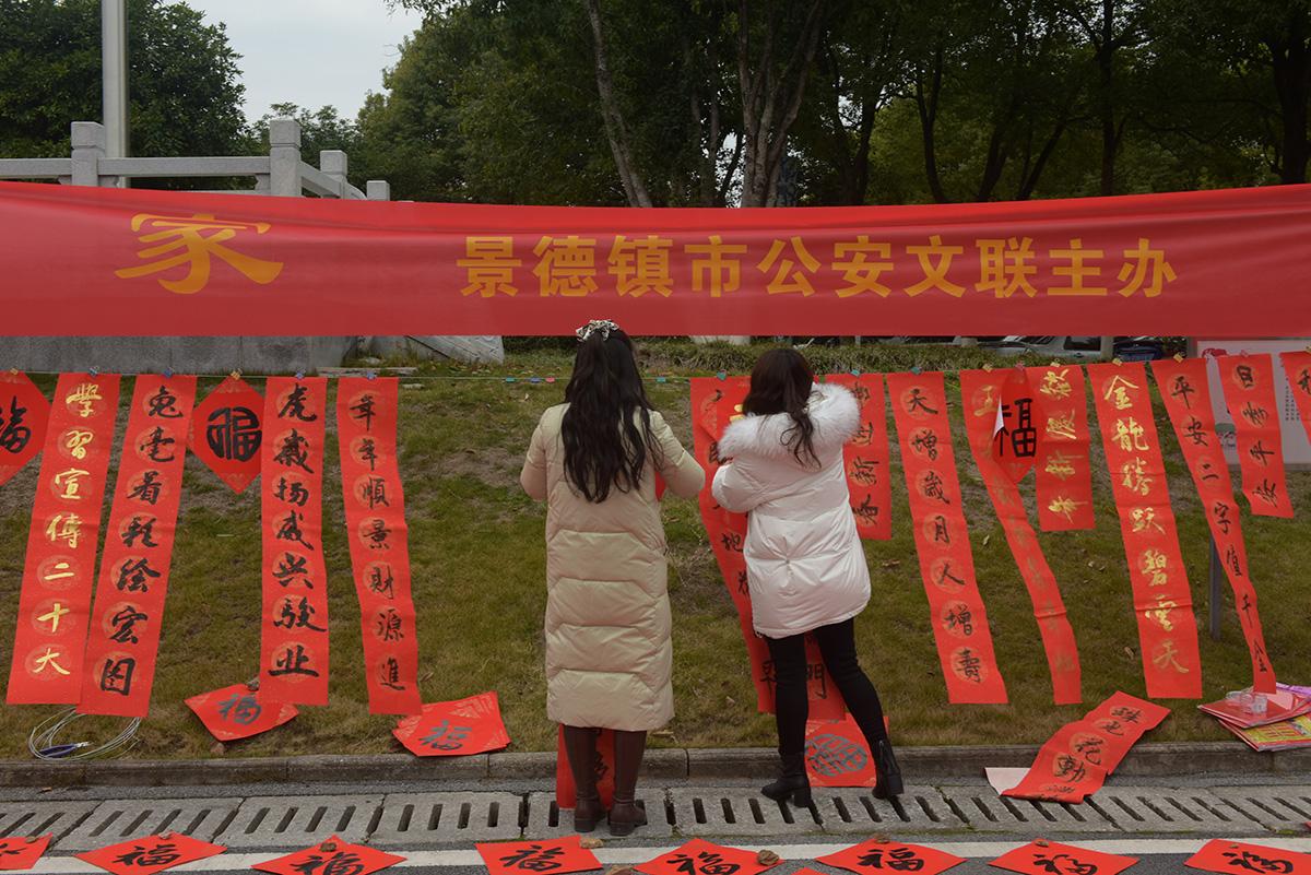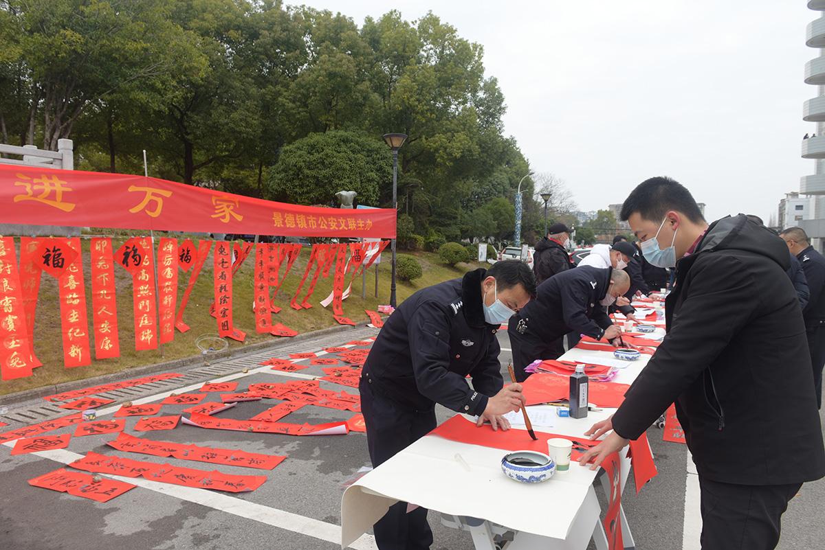 春节将至,年味渐浓。1月17日上午,江西省景德镇市公安局文联组织擅长书法的民警会员现场书写福字和春联送给民警、辅警和群众,传递春节的祝福和喜庆。