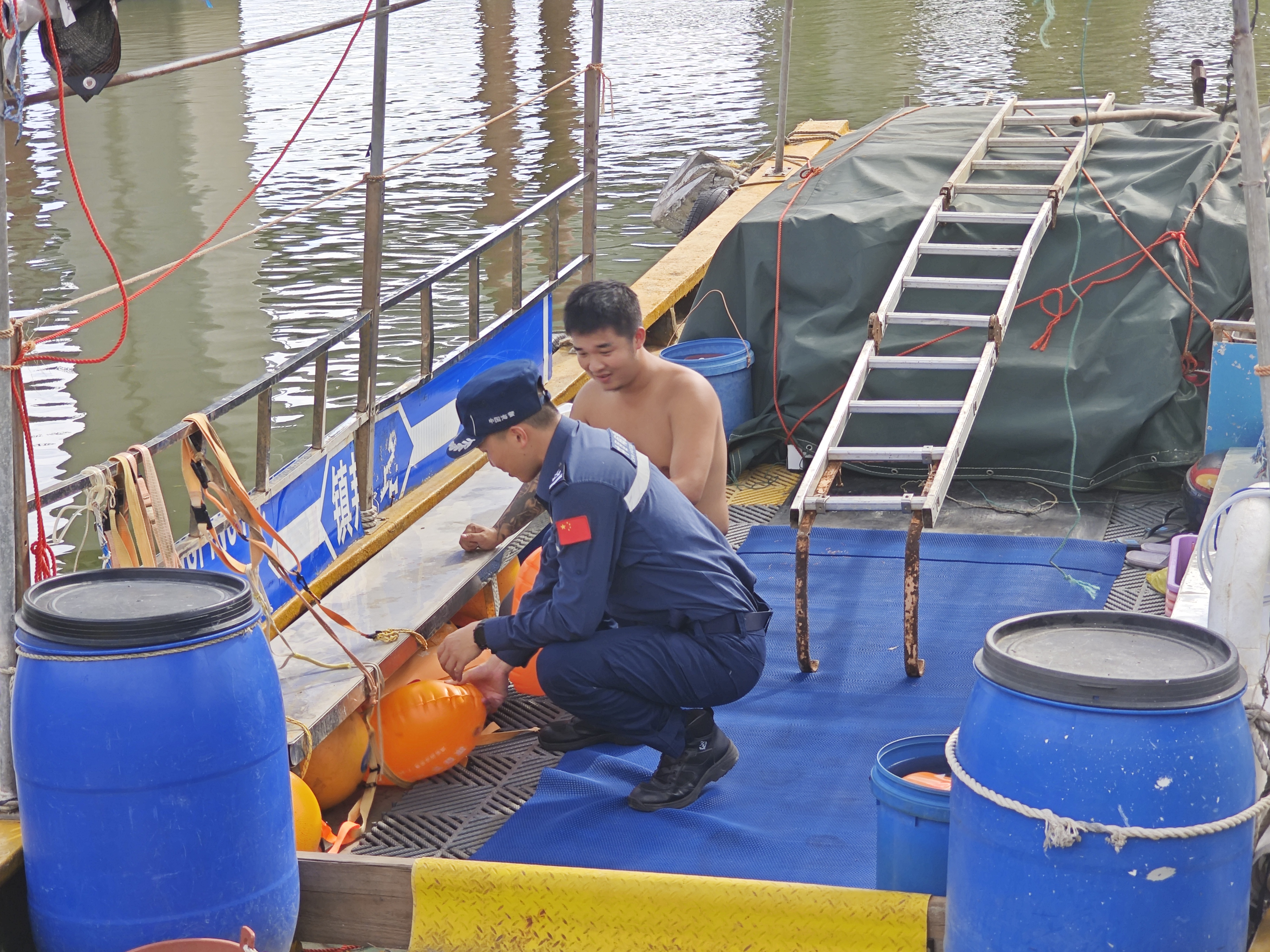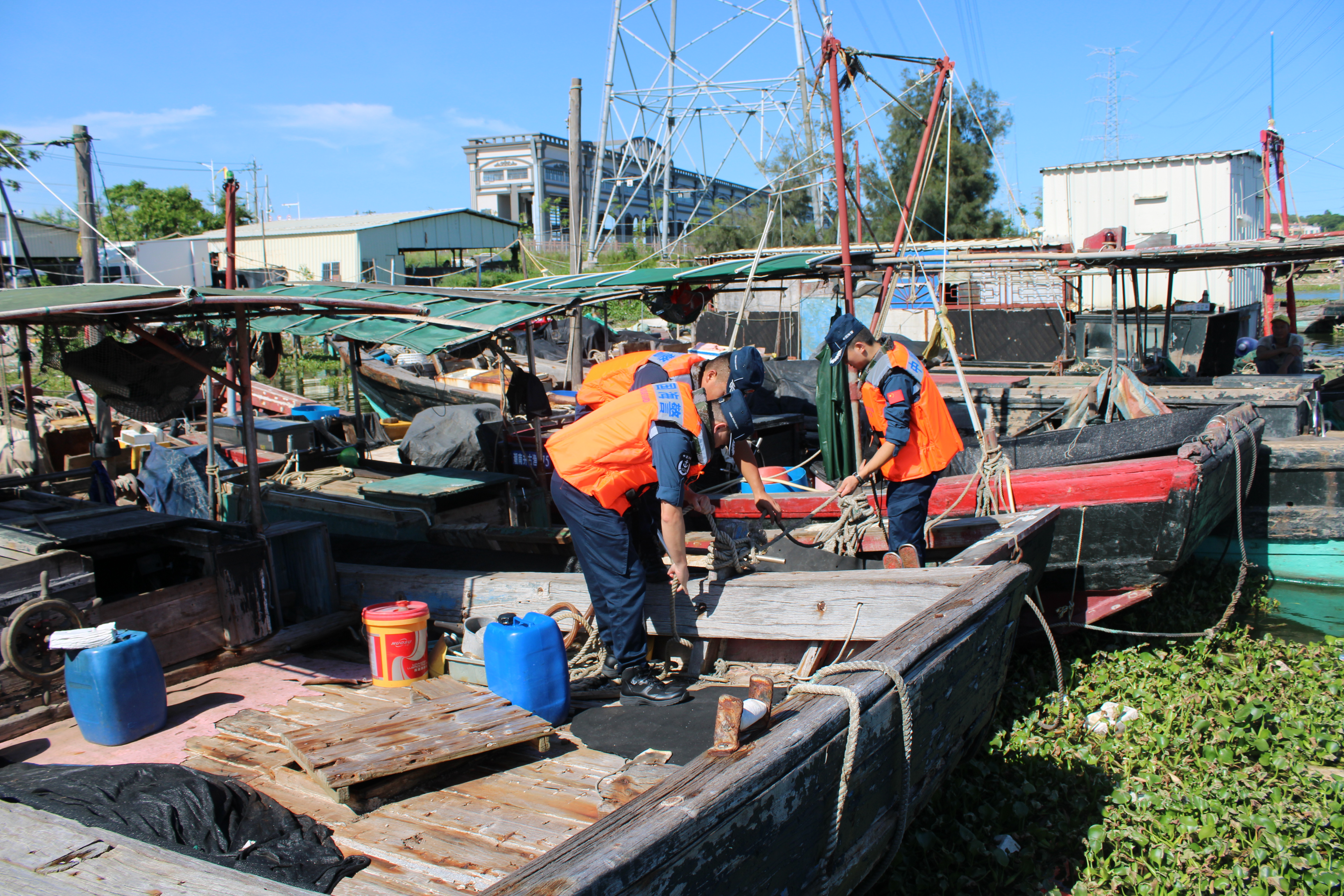 帮助渔民做好加固揽胜,检查船体设备