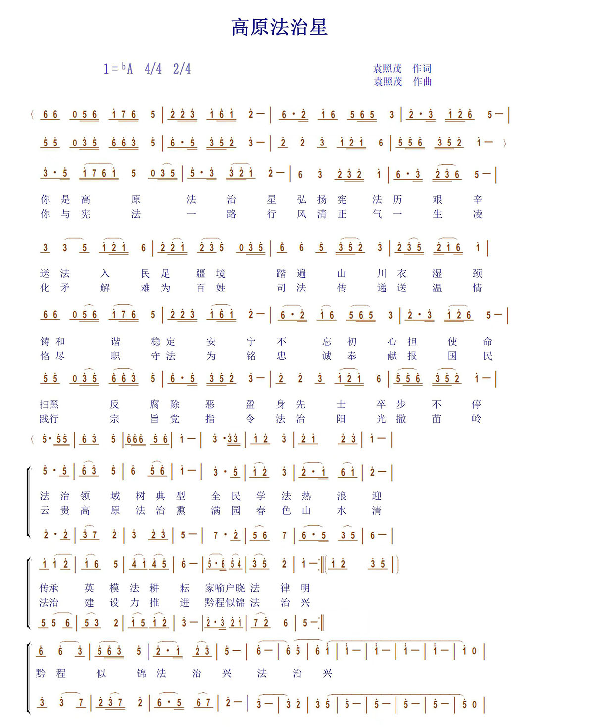 《高原法治星》曲谱