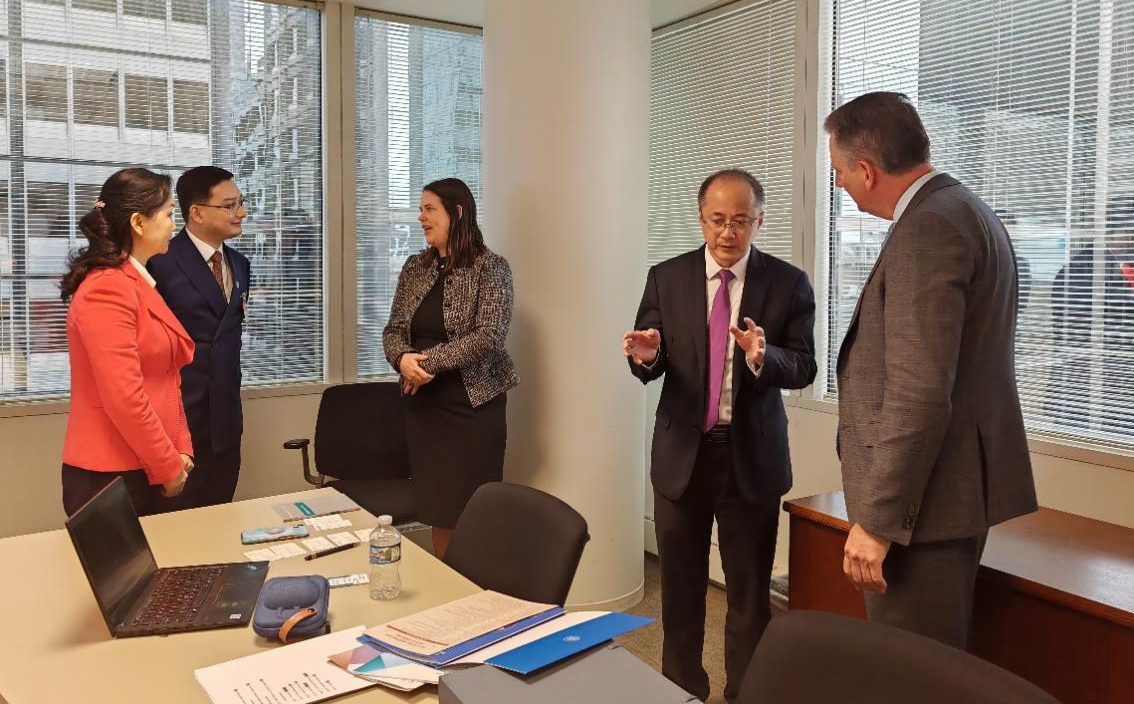 美国金融业监管局争议解决中心芝加哥区域办公室副总监摩根·约翰逊、深国仲院长助理兼任中国(深圳)知识产权仲裁中心主任陈巧梅、深国仲国际合作与发展处处长兼深国仲江门中心主任黄郭勇等参加业务交流。