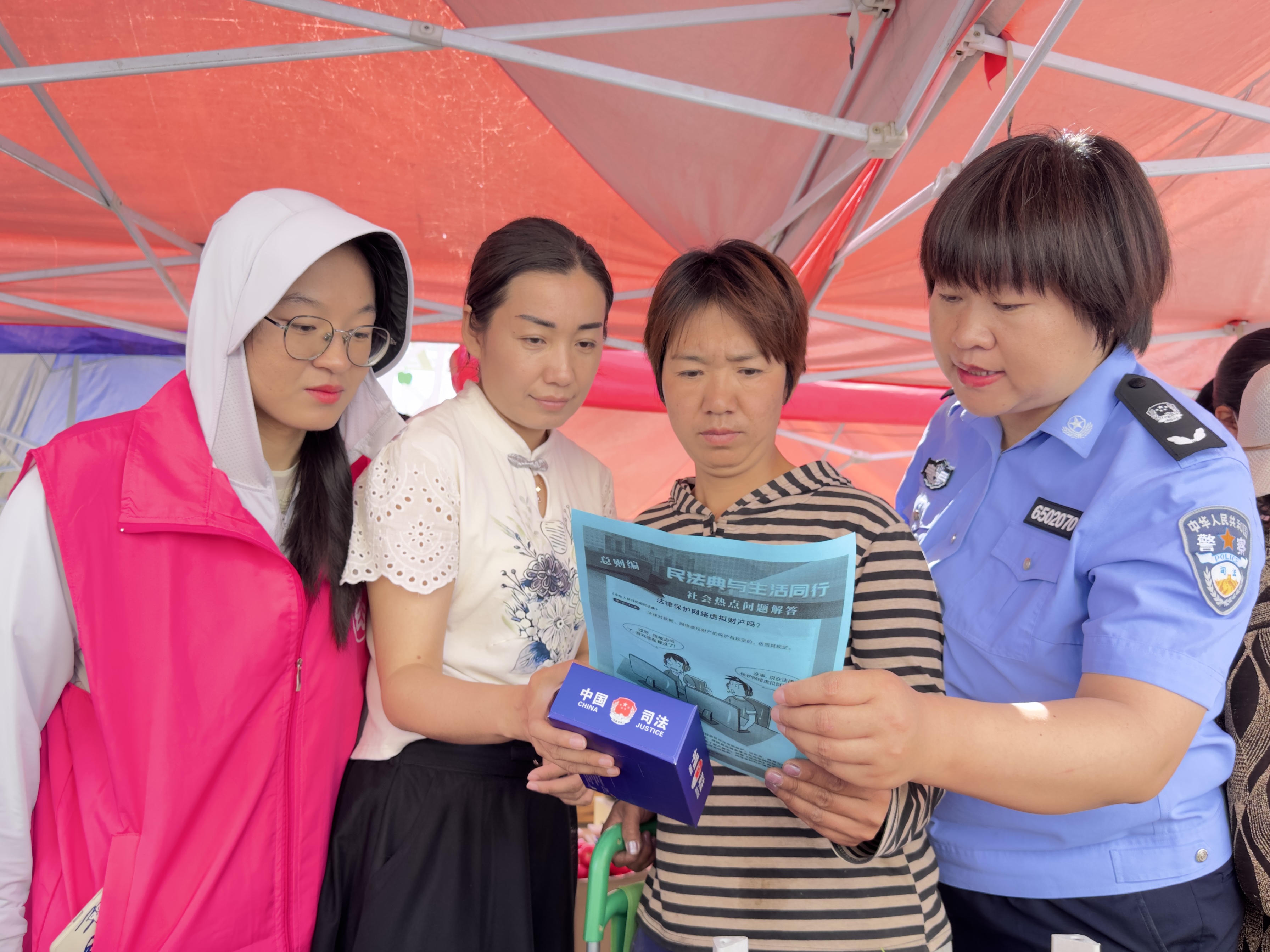 2024年5月是第四个“民法典宣传月”,为进一步增强职工群众的尊法学法守法用法意识,运用法律武器来维护自身的合法权益,5月13日,新疆生产建设兵团第二师二十五团司法所联合团妇联、团委、湖光社区等单位共同开展了“美好生活·民法典相伴”专题普法活动。活动中,普法志愿者们通过发放宣传手册、法治小礼品等方式,向过往职工群众、摆摊商户宣传《中华人民共和国民法典》相关内容,并结合工作实际,以法为据,为职工群众解答平时生活中遇到的法律问题。