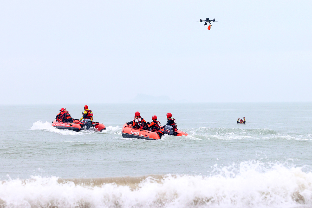 6月24日,浙江省舟山市公安局普陀山分局结合夏季治安打击整治“百日行动”,联合普陀山消防大队、舟山市千岛救援队组织开展防汛抗台救援演练。