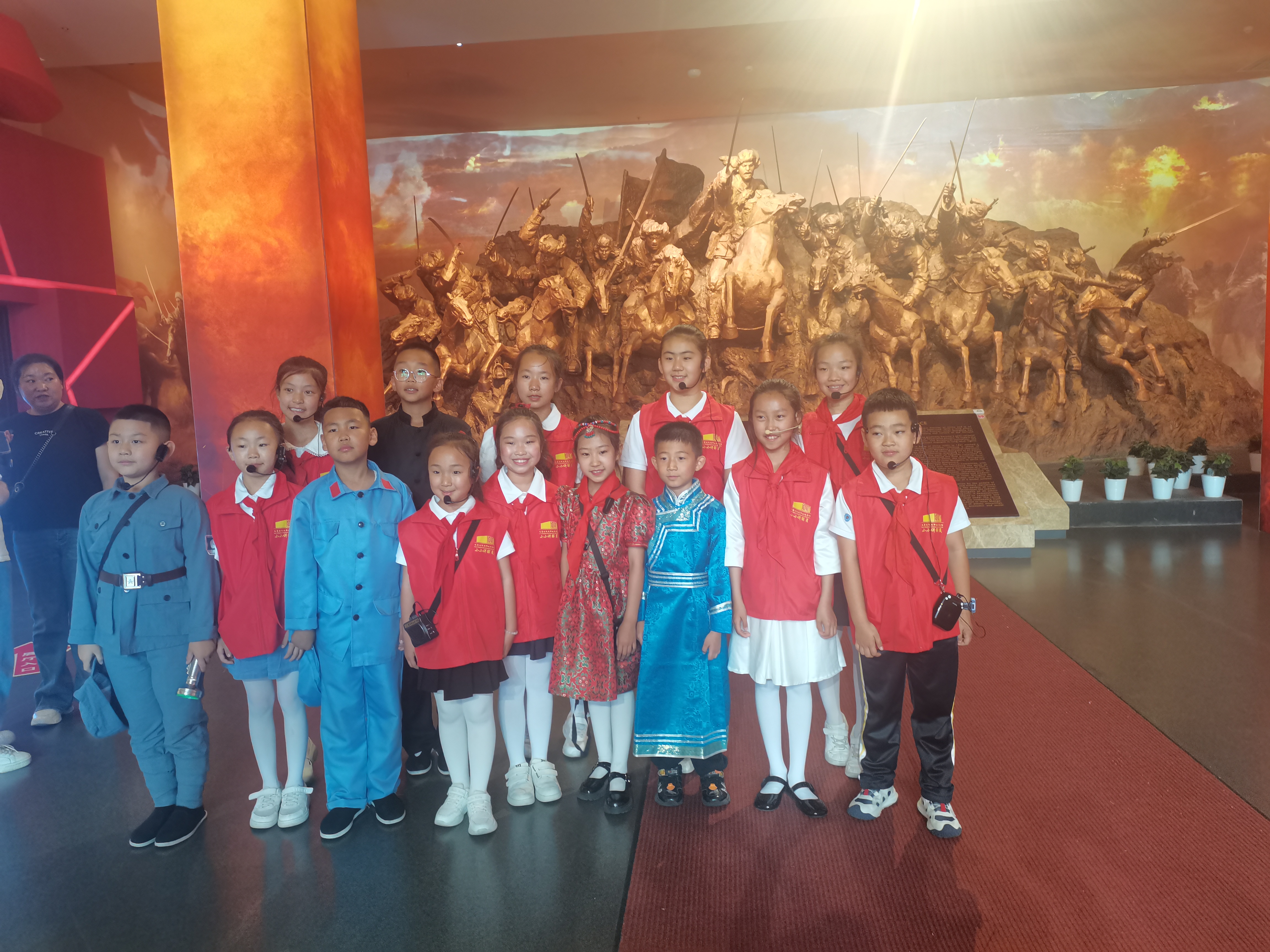 图为部分在内蒙古民族解放纪念馆担任讲解员和情景剧演员的小学生们。