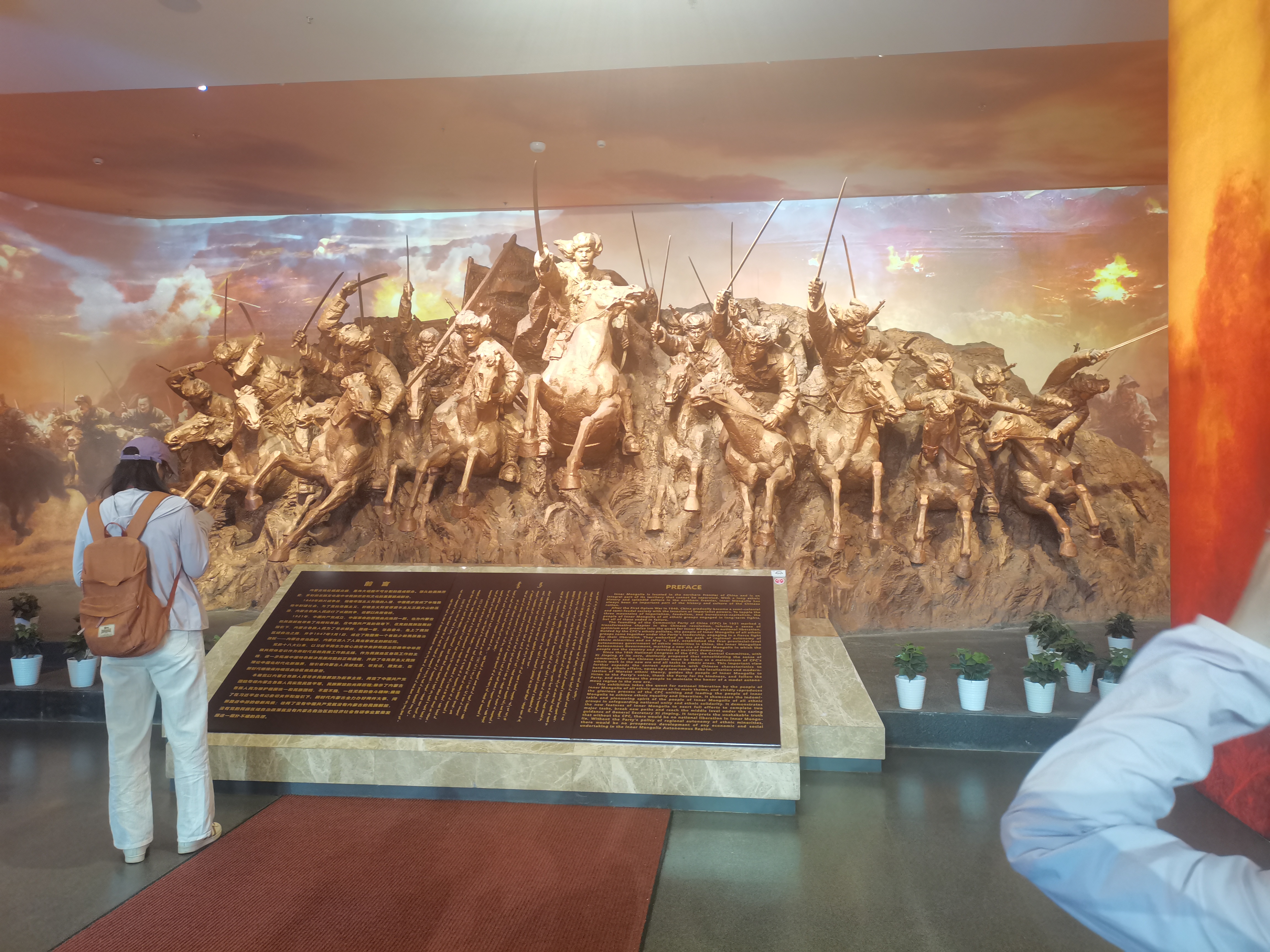 图为内蒙古民族解放纪念馆内的战斗群雕塑。