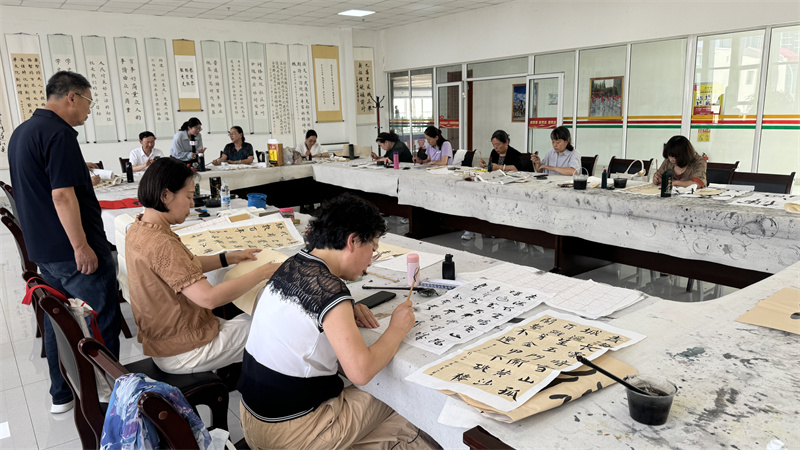 记者刚走进服务中心,就被宽敞明亮的暖城会客厅吸引,党务、政务、居务涵盖近100项服务,井然有序地办理着。乒乓球室、羽毛球馆、健身活动室内,居民们正锻炼着身体;歌舞演练厅内,马头琴的声音悠扬动听;书画室内,老人们围坐一圈,书法老师正对学员们的作品逐一点评……室内不时传来说笑声。