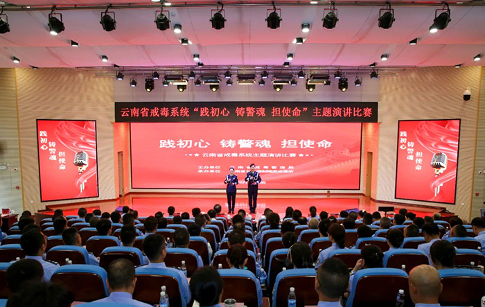 为扎实推动云南省司法行政戒毒系统实战大练兵见行见效,云南省戒毒管理局于6月28日在昆明举办了全省戒毒系统“践初心 铸警魂 担使命”主题演讲比赛决赛。现场,来自省戒毒管理局机关和各强戒所选送的20名选手紧扣主题,深入挖掘戒毒工作一线感人至深的先进事迹,以声情并茂的精彩演讲,呈现全省戒毒系统优秀警察立足平凡、追求卓越,爱岗敬业、忠诚履职的先进典型事迹。选手们每讲到精彩之处,都赢得了台下观众阵阵掌声。