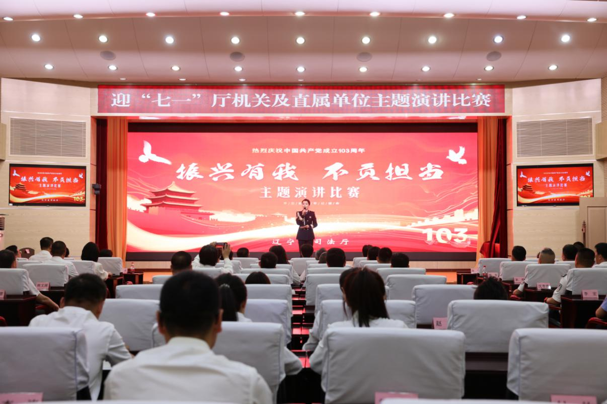 为庆祝中国共产党成立103周年,近日,辽宁省司法厅组织厅机关及直属单位警察职工举办 “振兴有我 不负担当” 迎“七一”主题演讲比赛。